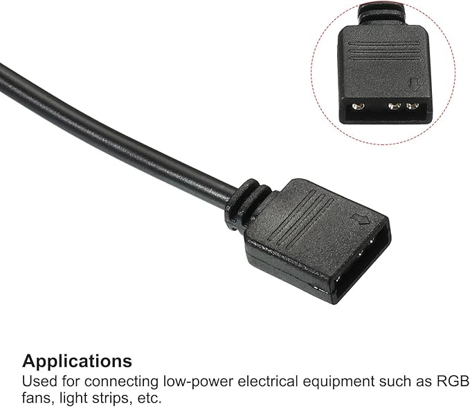 応用:オス延長ケーブルは、ケーブルを延長して電源を制御するように設計されており、RGB ファン、ライト ストリップなどの低電力電気機器で一般的に使用されます。