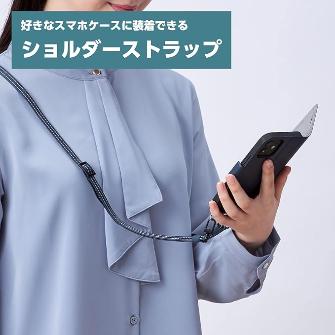 [エレコム] スマホ ショルダーストラップ スマホショルダー スマホストラップ レザー 反射板 安全機能付き ネイビー P-STSDH2RFPLNV