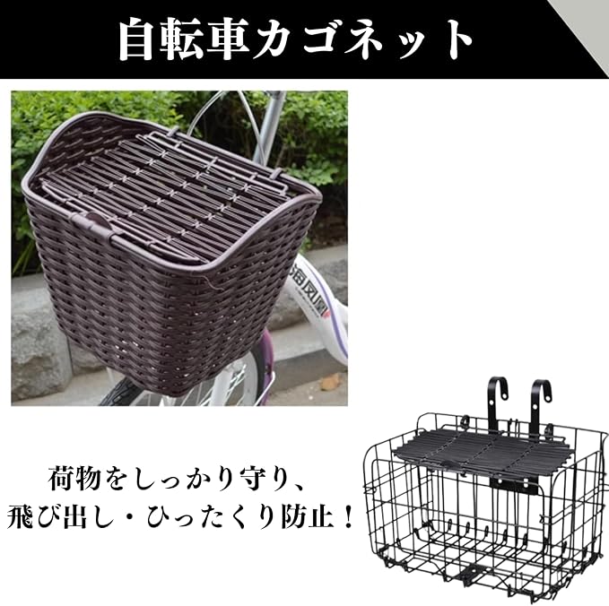 【自転車カゴネット】自転車バスケットの荷物をしっかり守ります。飛び出しやひったくり防止!