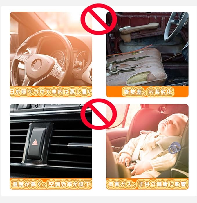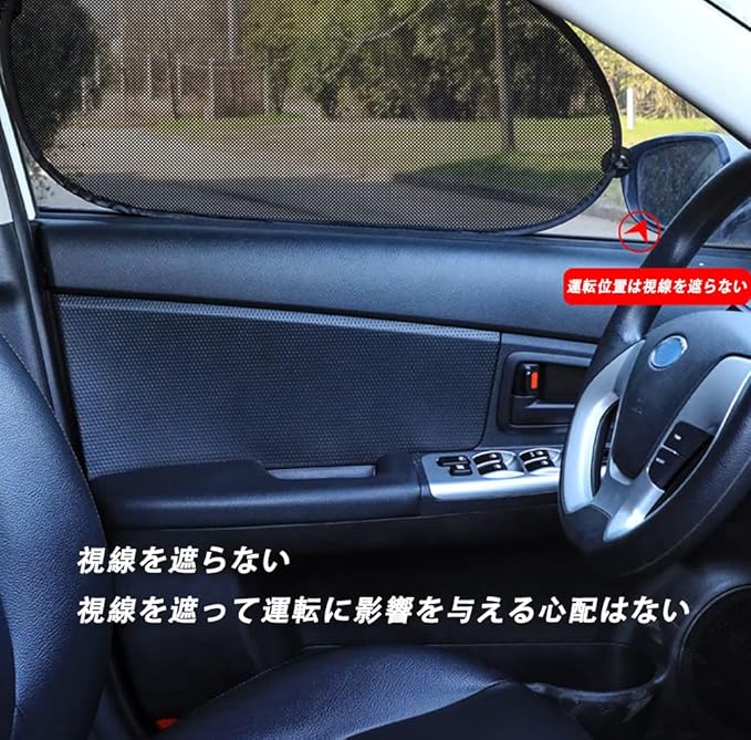 また、車内温度の上昇を防ぎ、エアコンの効率を高め、夏を快適に過ごすことができます。日中の強い日差しを抑え、高密度のメッシュ材で車内換気を確保。子供や車を直射日光による皮膚損傷から保護する。