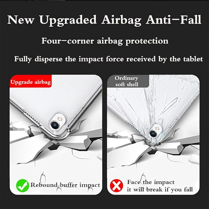 【衝撃吸収TPUクッション】:4つのエアクッションコーナーが落下防止を強化。 柔らかいTPU素材は、タブレットとハードウェアの背面と側面の衝撃を衝撃から最大限に保護します。
