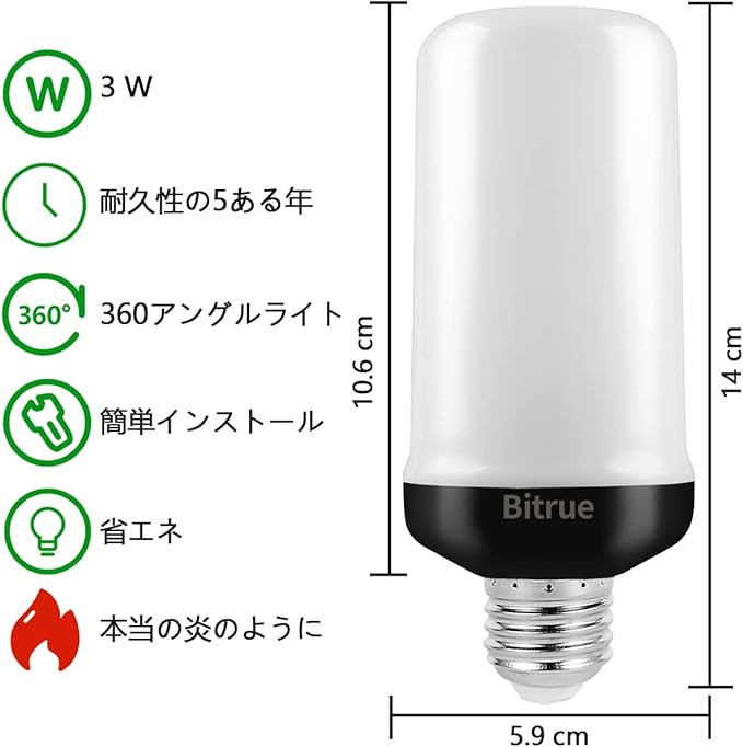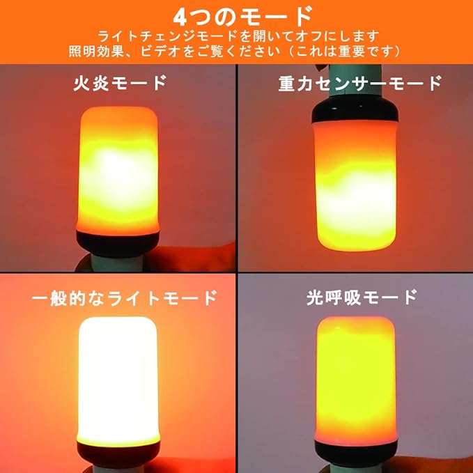 最新バージョンアップ バルブデザインがリアルな炎のブレをリニューアルし、よりリアルな炎効果を発揮するよう設計されています。 従来の製品より、使用寿命が40%延長でき、ランプの明るさは30%アップ、電球は20%低減できます。 当社のビデオは、現実生活で撮影されています。当社の製品はPSE認定に合格しており、経済産業省でMETI提出を行っています。 まずご覧いただき、ご購入を宜しくお願い致します(重要)