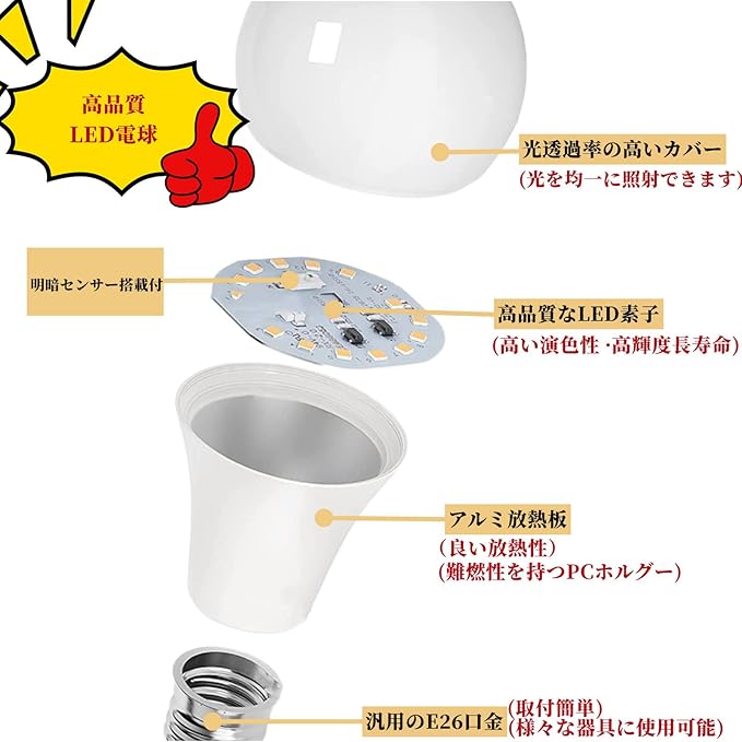 LED電球 明暗センサー電球 (人体検知機能なし) 常夜灯 暗くなると自動で点灯 明るくなると自動で消灯 E26口金 (9W )(電球色相当)950LM 省エネ玄関廊下駐車場職場バイク置き場盗難防止 PSE認証 (電球色)
