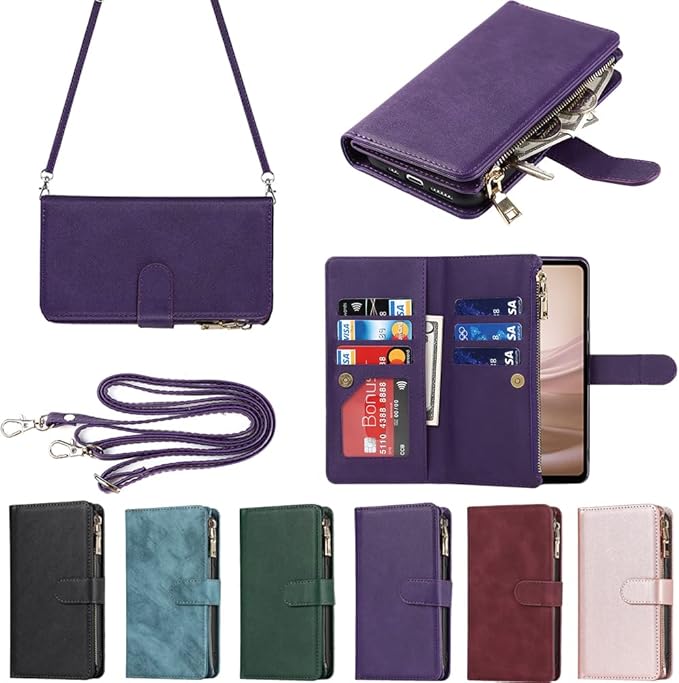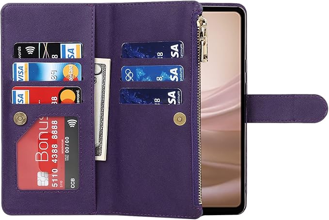 Eastwave for 用の AQUOS Sense7 SH-53C SHG10 ケース for 用の アクオス Sense 7 縄掛け 手帳型 財布型 ICカード コインポケット ストラップ付き カード 収納 小銭入れ ファスナーポケット付き パープル