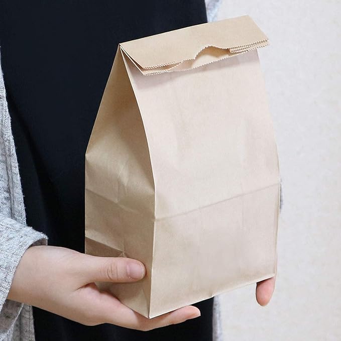 表面加工のない、ナチュラルなクラフトカラーの角底袋で、商品梱包・ラッピング・ごみ入れ等幅広い用途に使えます。
