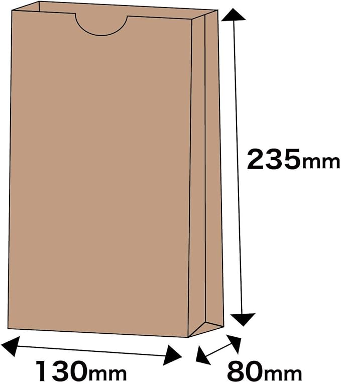 紙袋【日本製】包装 角底袋 未晒し(クラフト)S 幅13x高23.5xマチ8cm 【100枚】