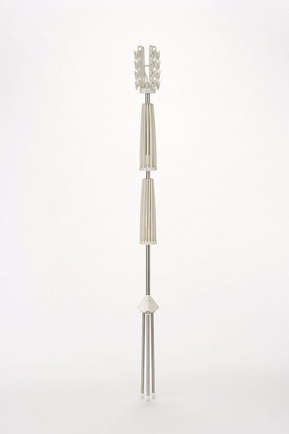 使用時サイズ(約):高さ180X幅82X奥行82cm 収納時サイズ(約):高さ203X幅15X奥行15cm製品重量(約):1.8kg能力 ピンチハンガー:4本(ピンチ16個付) タオルハンガー:16本+12本 全体で10kgまで