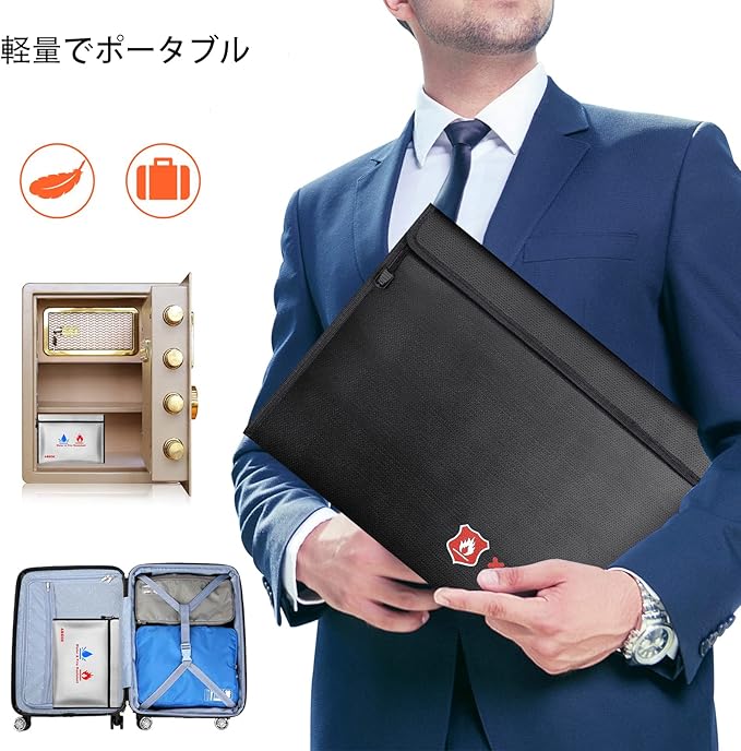 耐火バッグ 書類保管ケース 財産収納ケース タブレット収納可能 金庫耐火バッグ 防水防爆防炎 難燃加工 集金袋 防火ファスナー 安心保管袋 現金収納 ファイル(2サイズ)(ブラック)