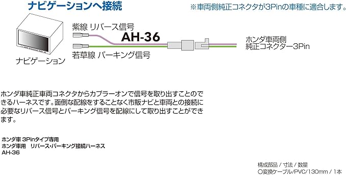 ストリート(Street) Mr.PLUS ホンダ車用 3Pin リバース ・ パーキング 接続ハーネス AH-36