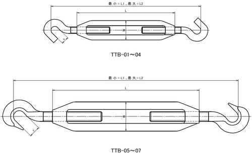 ●ワイヤロープやタイロッドなどの張り具合の調節に。●枠を回転させると、緩めたり、締めたりすることができます。