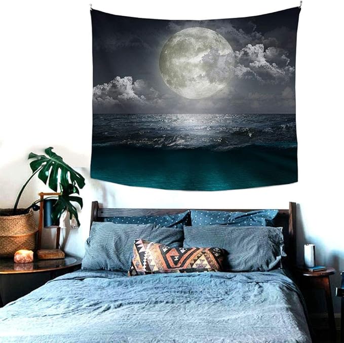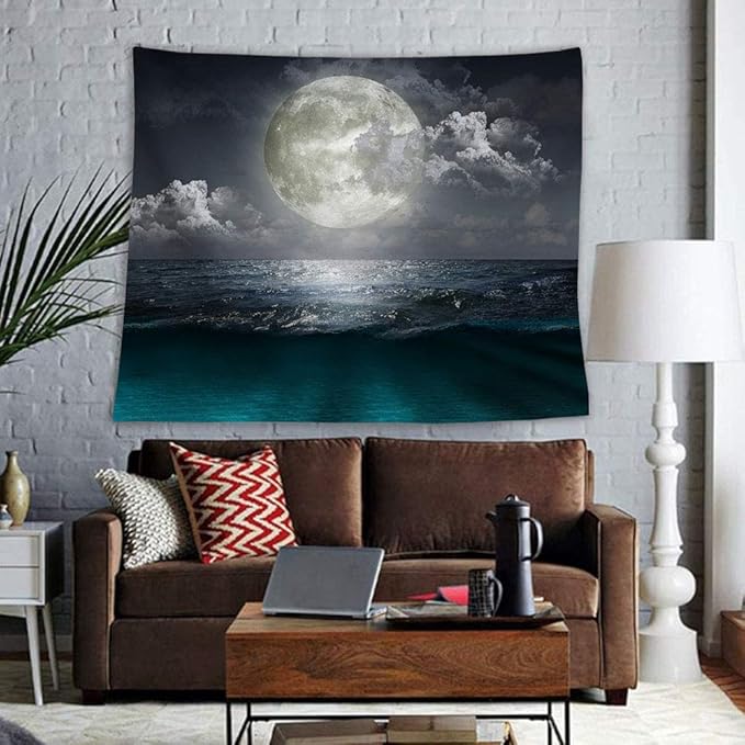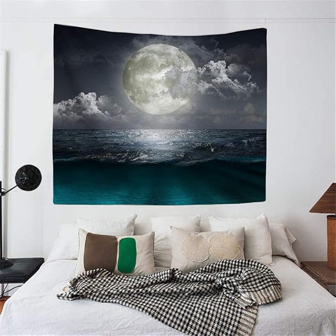 TSUBASI 夜景タペストリー 大判 美しい満月の夜空と海 おしゃれ インテリア ファブリック装飾用品 多機能 模様替え 部屋 窓カーテン 個性ギフト (230*150,満月B)