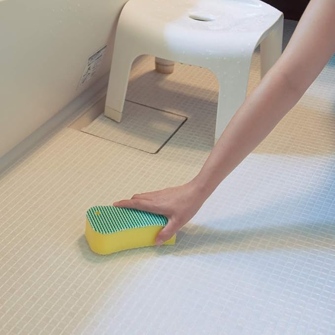 浴室などに使われている水はけのよい凹凸床用の汚れを落とす「ツンツンブラシ」と傷をつけずにしっかりと浴室の汚れを落とす「W繊維」の両方の機能を持ったハイブリットなスポンジです。どちらも洗剤不要で水だけで汚れをスッキリ落せます。