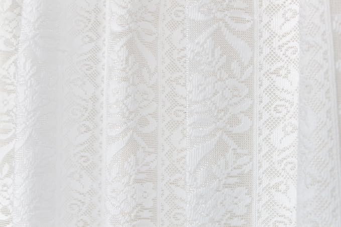 Arie(アーリエ) カフェカーテン ホワイト 幅150 丈45cm UVカット ストライプ小花