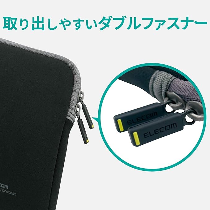 クッション性の高いネオプレンケースがキズから優しく守る。出し入れが簡単なシリコン引き手のダブルファスナー付きネオプレンケース