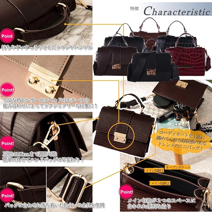[エンジェルムーン] 小さめバッグ レディース パーティー フォーマル ビジネス ミニバッグ ポシェット ミニボストン 斜めがけ