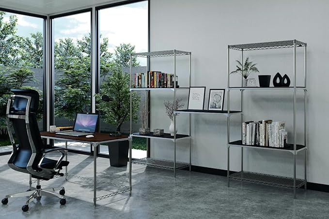材質:棚板/スチール(クロームメッキ、クリアコーティング仕上げ)、テーパードスリーブブラック/ABS樹脂