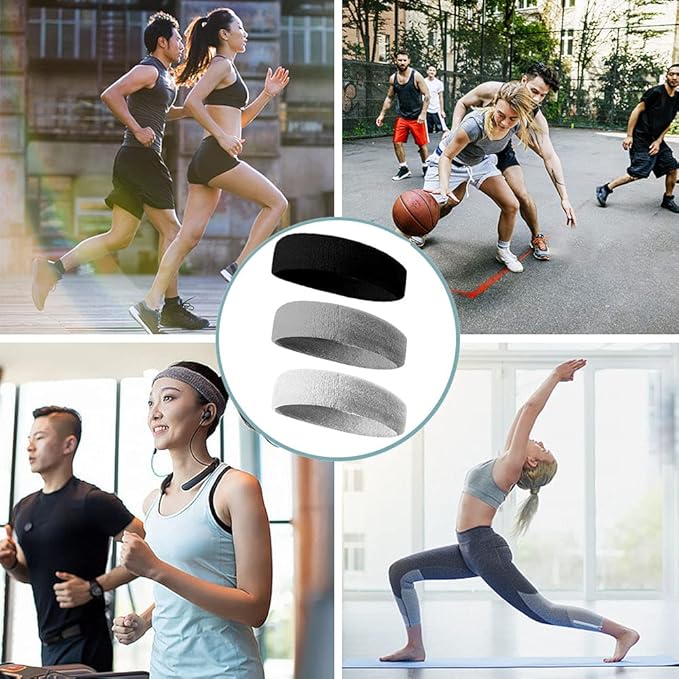 ヘッドバンド ヘアバンド 汗止め コットン素材 通気性 伸縮性 吸汗速乾 抗菌防臭 無地 髪留めらかい スポーツターバン 肌触りが柔らかい ランニング ダンス ヨガ ジョギング 男女兼用 (ブラック+ブラック+ブラック)