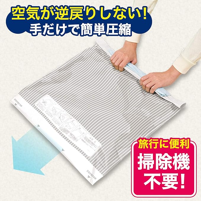 ●掃除機不要! 手で巻くだけの簡単圧縮! 空気が逆戻りしません。