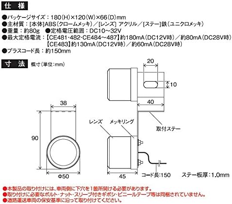 【材質】本体:ABS(クロームメッキ)、レンズ:アクリル、ステー:鉄(ユニクロメッキ)