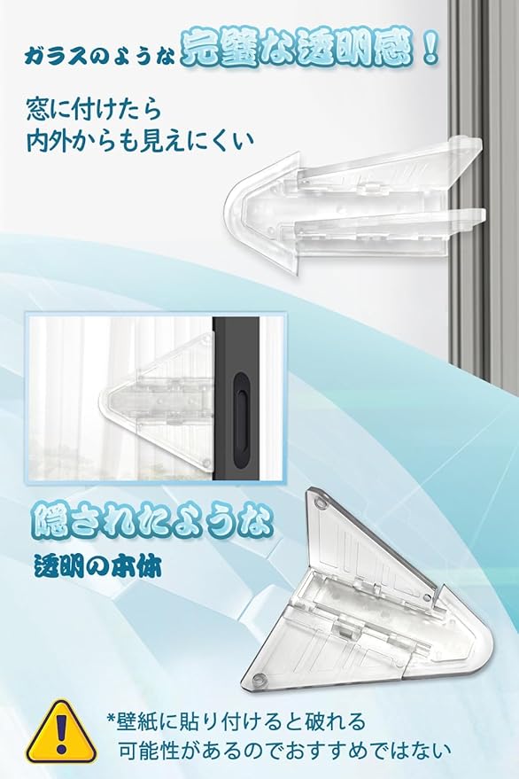 【簡単ロック式】戸を大きく開ける時は、羽を広げてください。羽を閉じた時のみストッパーの役目をはたします。窓一つで安全ロック2~3個を設置するともっと堅固になります。