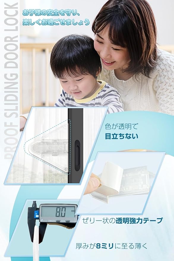 【泥棒防犯対策】子供のいたずら防止だけでなく、フィルムとの併用で泥棒防犯対策としてもご使用いただけます。ベランダ 台所 居間 バルコニーへの窓 スライディングドアなどに適用します。