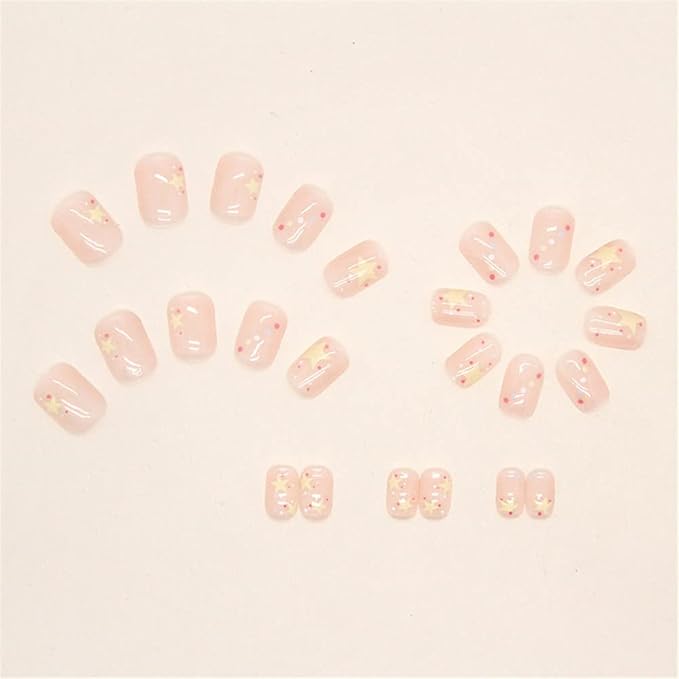 ネイルチップネイルシール 簡単オフ 貼るジェルネイルカラーネイル 貼るネイル ネイルアート 可愛い レディース 春 夏ネイル 24枚入 おしゃれ 人気 女性 プレゼント セルフネイル 両面テープ48個付き (星星デザイン)
