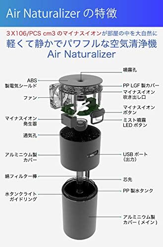 マイナスイオンで有害物質を除去 ポータブル 空気清浄機 加湿器 アロマディフューザー グラデーション LEDライト