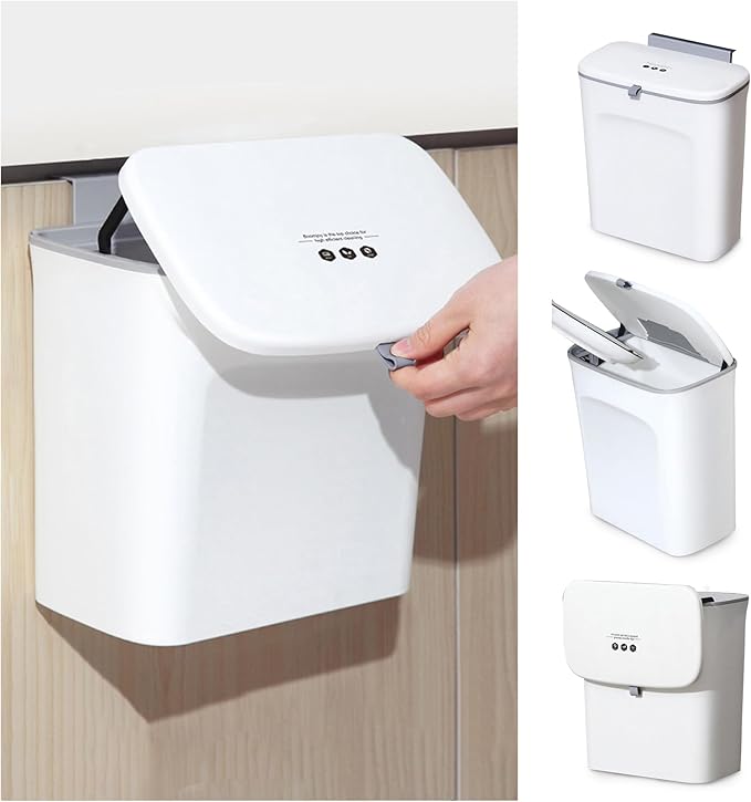 【多場合にも大活躍】:壁掛けゴミ箱のフタ部分を取り外すことができるので、シンクの上などに設置することができます。壁掛けゴミ箱が食器棚、バスルーム、ベッドルーム、オフィス、トイレ、キッチン、洗面所、車内、リビング、キャビネット、シンクなどさまざまな場所で使えます。