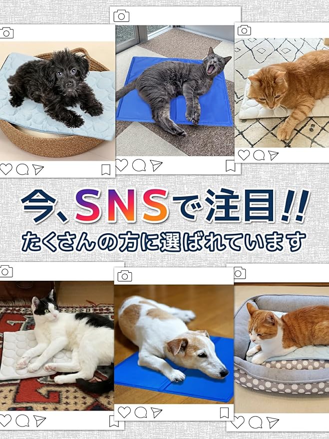 【ペットの夏の熱さ対策に】夏の茹だるような暑さ対策に、ペット用冷却ジェルマットはいかがでしょうか!暑い日でもマットのジェルがひんやりと冷たく、ペットの熱中症対策にもなります。屋内外で使用でき、折りたたんで持ち運びも楽々。