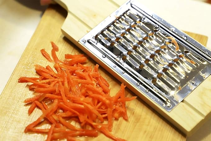 お味噌汁やお鍋の具材や、サラダ、野菜炒めなど幅広く使えるツールです。さまざまな野菜をおろして、お料理の幅を広めていくお手伝いをしてくれます。