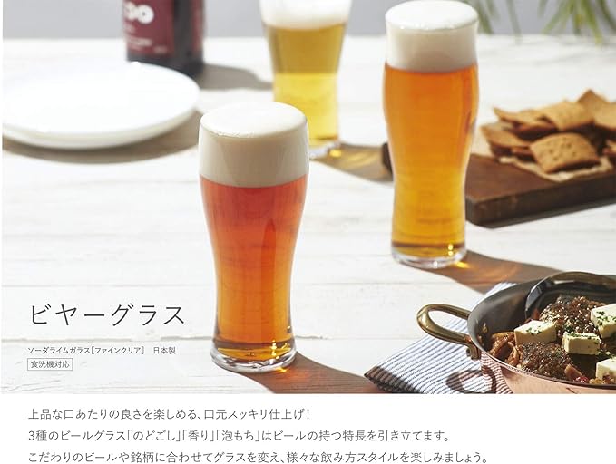●3種のビールグラス「のどごし」「香り」「泡もち」はビールの持つ特徴を引き立てます。