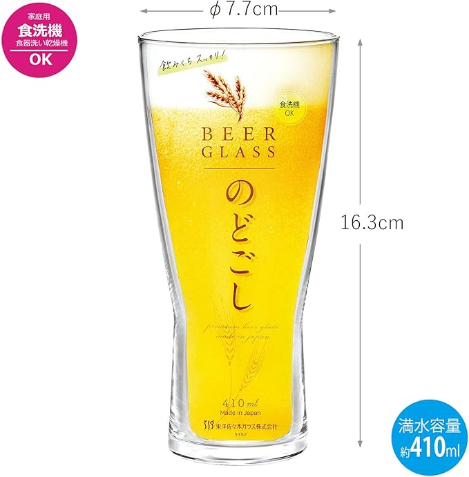 東洋佐々木ガラス ビールグラス ビヤーグラス のどごし 410ml 日本製 食洗機対応 ガラスコップ グラス コップ ハイボールグラス サワーグラス チューハイグラス 薄い B-21145-JAN-P