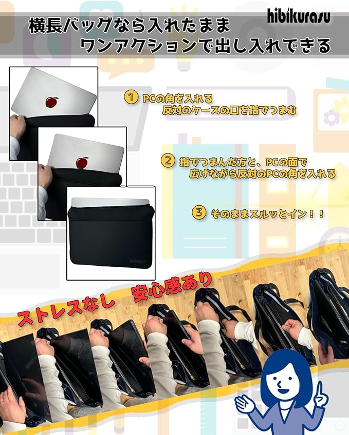 ✅【ノンストレス】横型のトートバックならワンアクションで出し入れ可能。ストレスは最小に、安心感は最大です。バッグインバッグにできるスリムなケースですが、パソコンを入れてそのまま持ち歩くのもアリ!