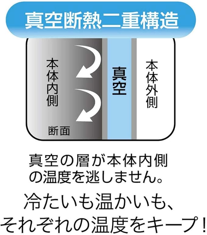 真空断熱二重構造なので、真空の層が本体内側の温度を逃がしません