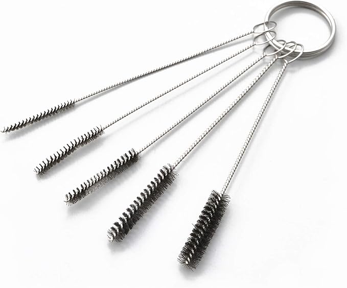 普通のブラシでは届かない、キャブレターの細い穴の内部やネジ山の中等を洗浄するのに最適です。さまざまなサイズの穴に使用可能な5本セット。
