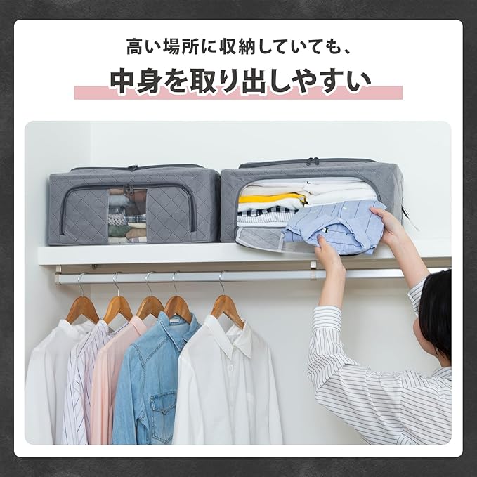 ●天面・前面にファスナー付きで、上からと前からの2箇所から衣類の出し入れができる。収納しやすく取り出しやすい。