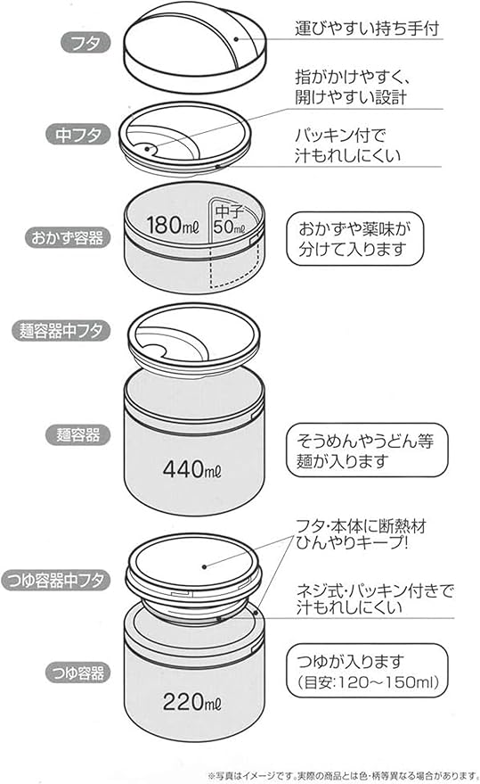 容量:おかず容器/180ml 中子/50ml 麺容器/440ml つゆ容器/220ml