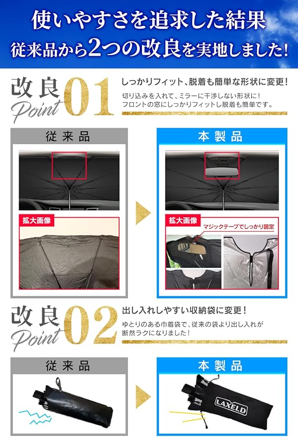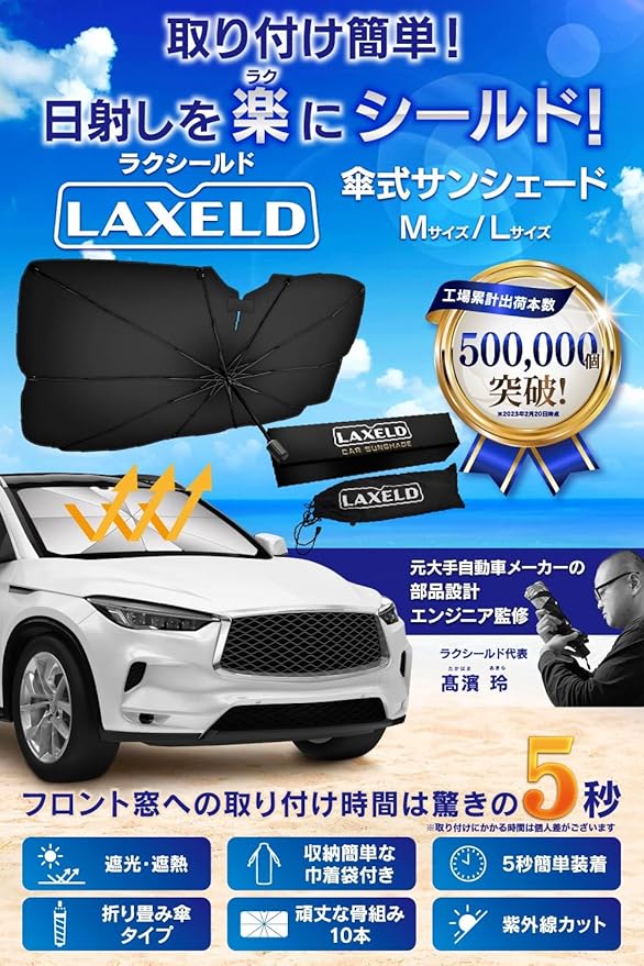 【日本企業 x 自動車技術者監修】傘型 サンシェード 車 フロント 遮光 折りたたみ 日除け 自動車用品 ハイエース アクア キャラバン デリカD5 ノア ステップワゴン LAXELD (Lサイズ)