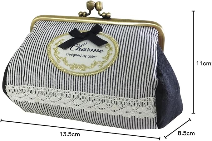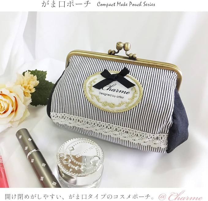 コロンとした形がかわいい、がま口タイプの化粧ポーチ。かばんに入れて持ち運ぶのに便利です。がま口が大きく開いて出し入れしやすく、開け閉めが楽なのも魅力的です。毎日使う必要なコスメを収納してバッグの中に入れて持ち歩きしやすいコンパクトサイズ。
