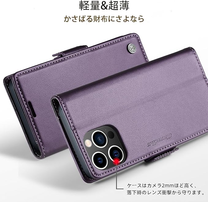 【J.DL】iPhone 14promaxケース手帳型 iphone 14PROMAX財布型 携帯カバー アイフォン14ProMaxスマホケース 高级PUレザー 耐衝撃 耐摩擦 全面保護 サイドマグネット カード収納 スタンド機能 軽量 手触りが良い 人気上品な シンプル気質 ギフト , IPhone 14promax 6.7インチ対応(パープル)