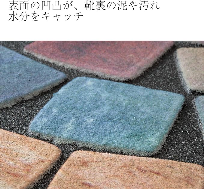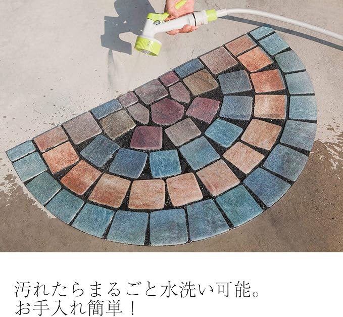 コモライフ 玄関クリーンマット 石タイル調 オーロラ 半円 屋外 水洗い 汚れ落とし 滑り止め