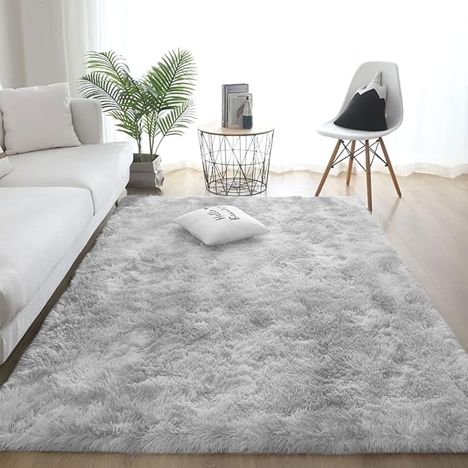 ラグマット カーペット 120x160cm おしゃれな北欧風シャギーラグ 全厚約5cm 洗えるラグ 滑り止め付き 毛足約4cm ふわっとした手触り 防音絨毯 オールシーズン快適に使用 長方形 ROCYJULIN(ライトグレー 約1.5畳 )