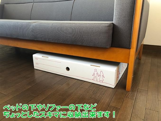 四つ切りの画用紙(392 542mm)を折らずに収納できます。A2サイズ(420 594mm)のポスター等も収納可能。ベッドやソファの下等、ちょっとしたすき間に収められます。