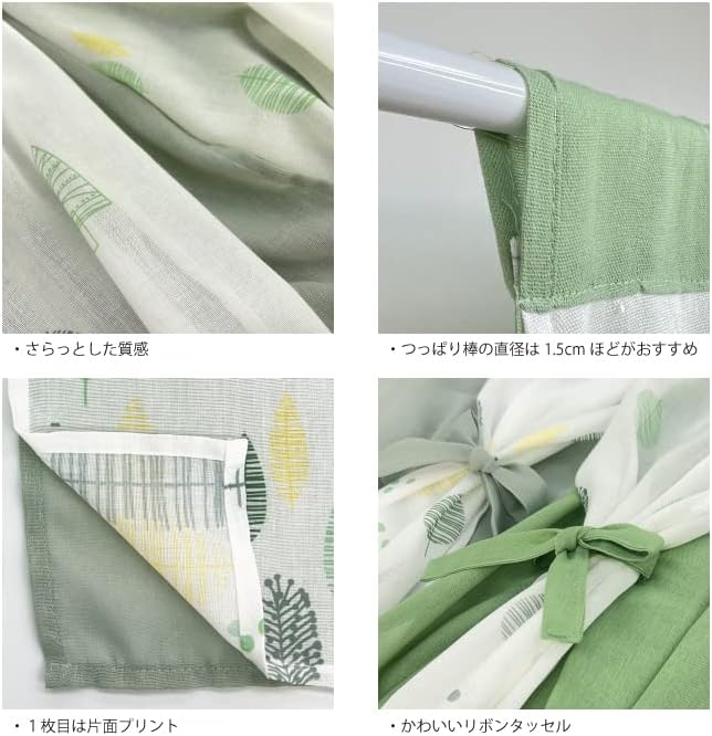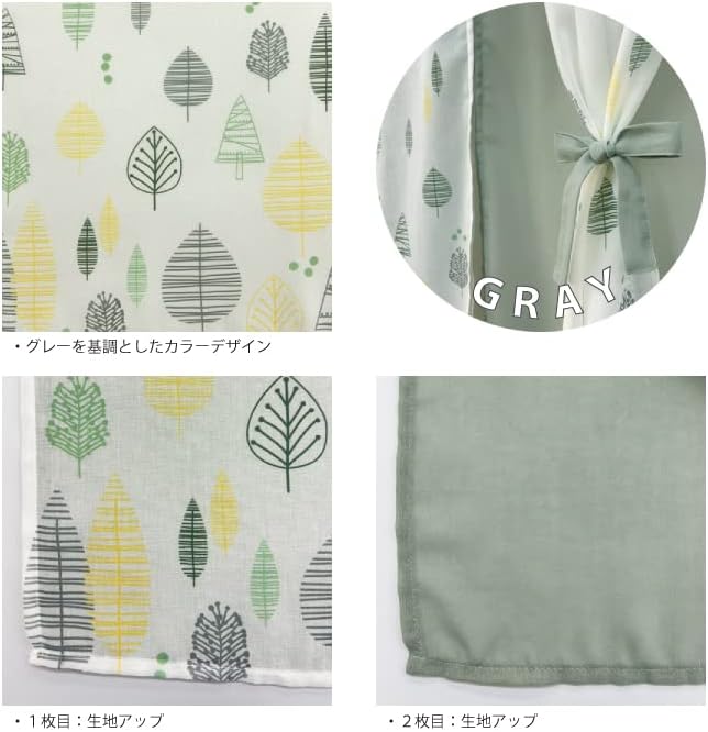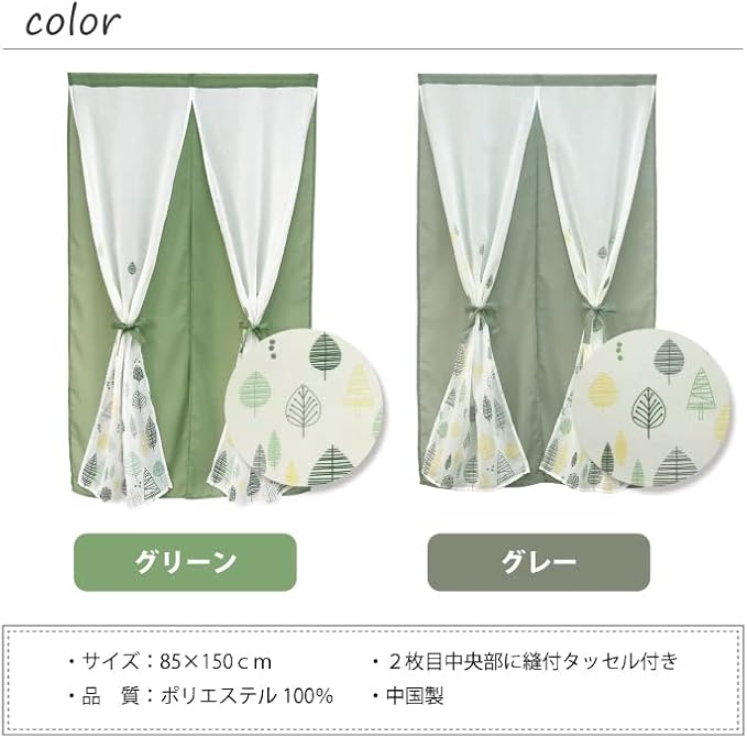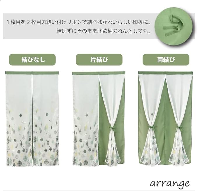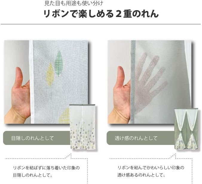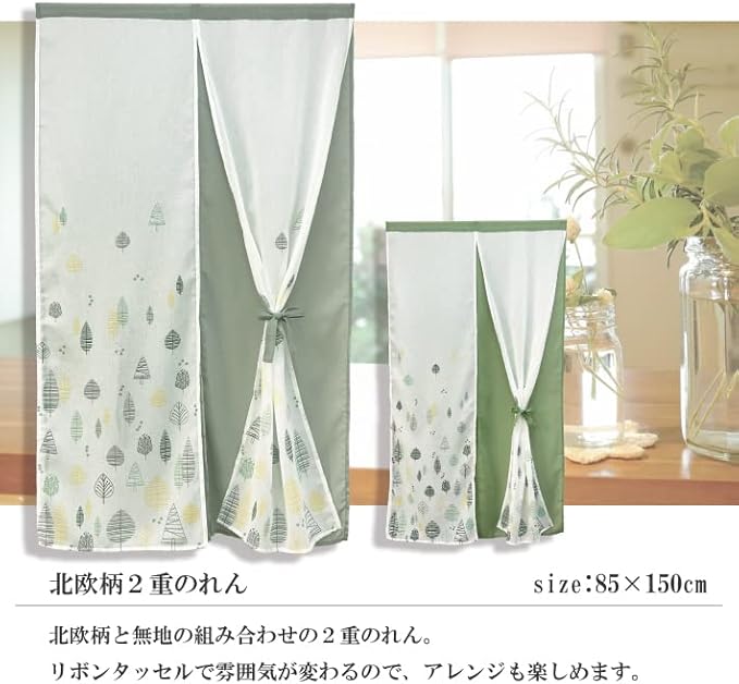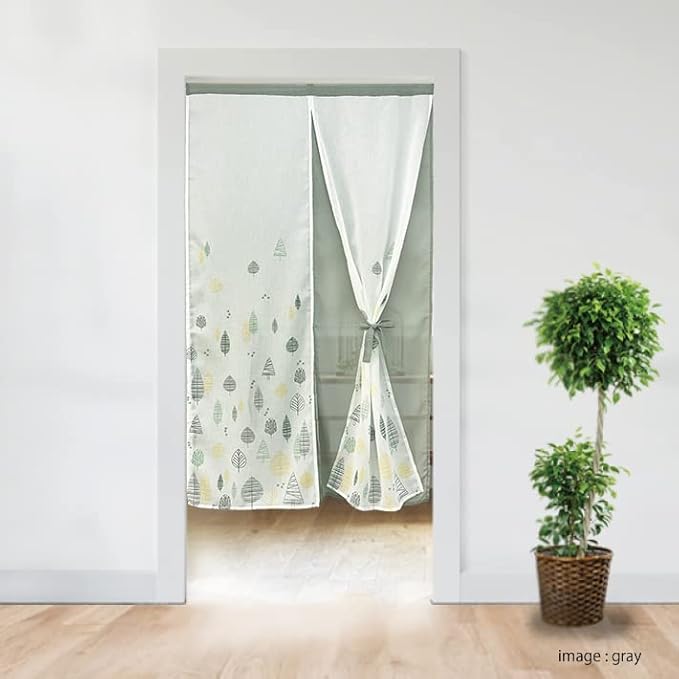 のれん 北欧柄 2重のれん 85 150cm おしゃれ かわいい リボン 北欧風 無地調 リーフ柄 部屋 間仕切り 目隠し グリーン グレー (グレー)