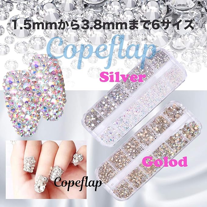 コぺフラップ ネイル ストーン ネイルパーツ ラメ ホロ パーツ 結晶 ケース ホログラム グリッター 大容量 (シルバー系 ゴールド系)