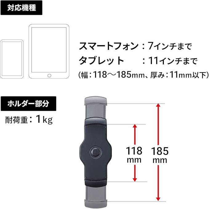 7インチまでのスマートフォンや11インチまでのタブレットに対応した高さ調節ができるデスクトップスタンドです。