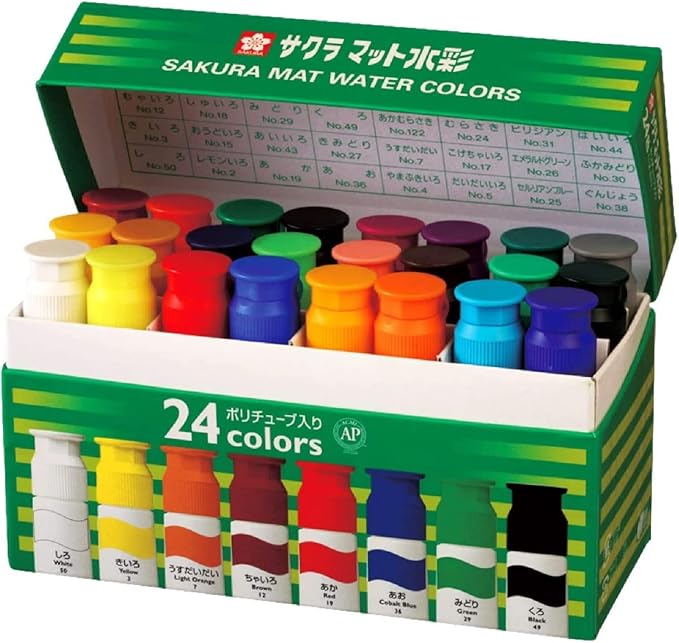 サクラクレパス 絵の具 マット水彩 ポリチューブ入り 24色セット MW24PE