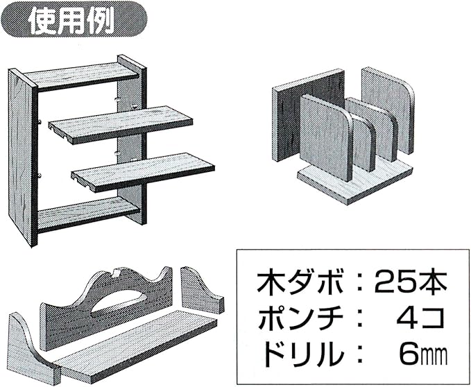 セット内容:木ダボ 20本、ポンチ 4個、ドリル8mm