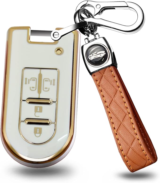 [ontto] ダイハツ専用 スマート キーケース キーカバー キーホルダー DAIHATSU ムーヴ タント キャスト アクティバ スタイル ミラ トコットなふに適用 おしゃれ 傷防止 落ちにく 柔らかい 電波障害なし プレゼント 4ボタン ホワイト