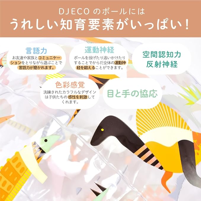 DJECO ジェコ ボール ディノ ビーチボール 35㎝ 恐竜 プール 水遊び アウトドア 海 おしゃれ モンテッソーリ 2歳 3歳 4歳 5歳 6歳 7歳 男の子 幼児 赤ちゃん 入園祝い 入学祝い プレゼント ギフト おもちゃ 子供 キッズ 誕生日 運動会 ハロウィン 秋の夜長 (DJ00174)